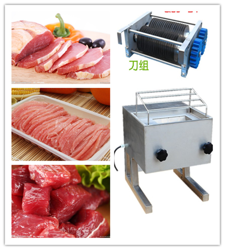 ●本机可根据客户加工产品需要,配置不同形式刀组,分别实现对无骨肉类及类似榨菜富有弹性的食物一次性切片、二次切丝、三次切丁功能,满足餐饮行业产品种类多的要求。