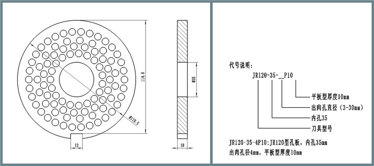 【应用范围】: 适用于JR120型绞肉机及孔板直径为120mm的绞肉机